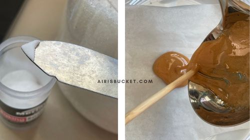- Panaskan gula pasir di dalam senduk tahan panas