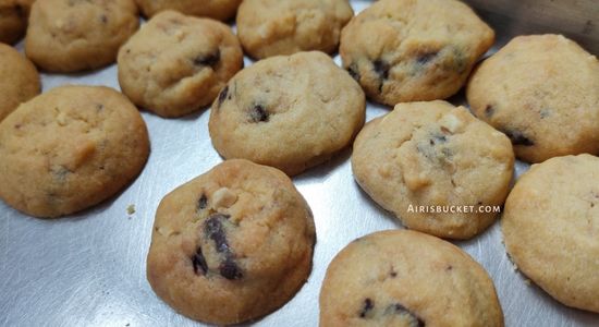 - 1 sudu kecil butter oil (untuk dapatkan bau yang lebih kurang biskut Famous Amos)